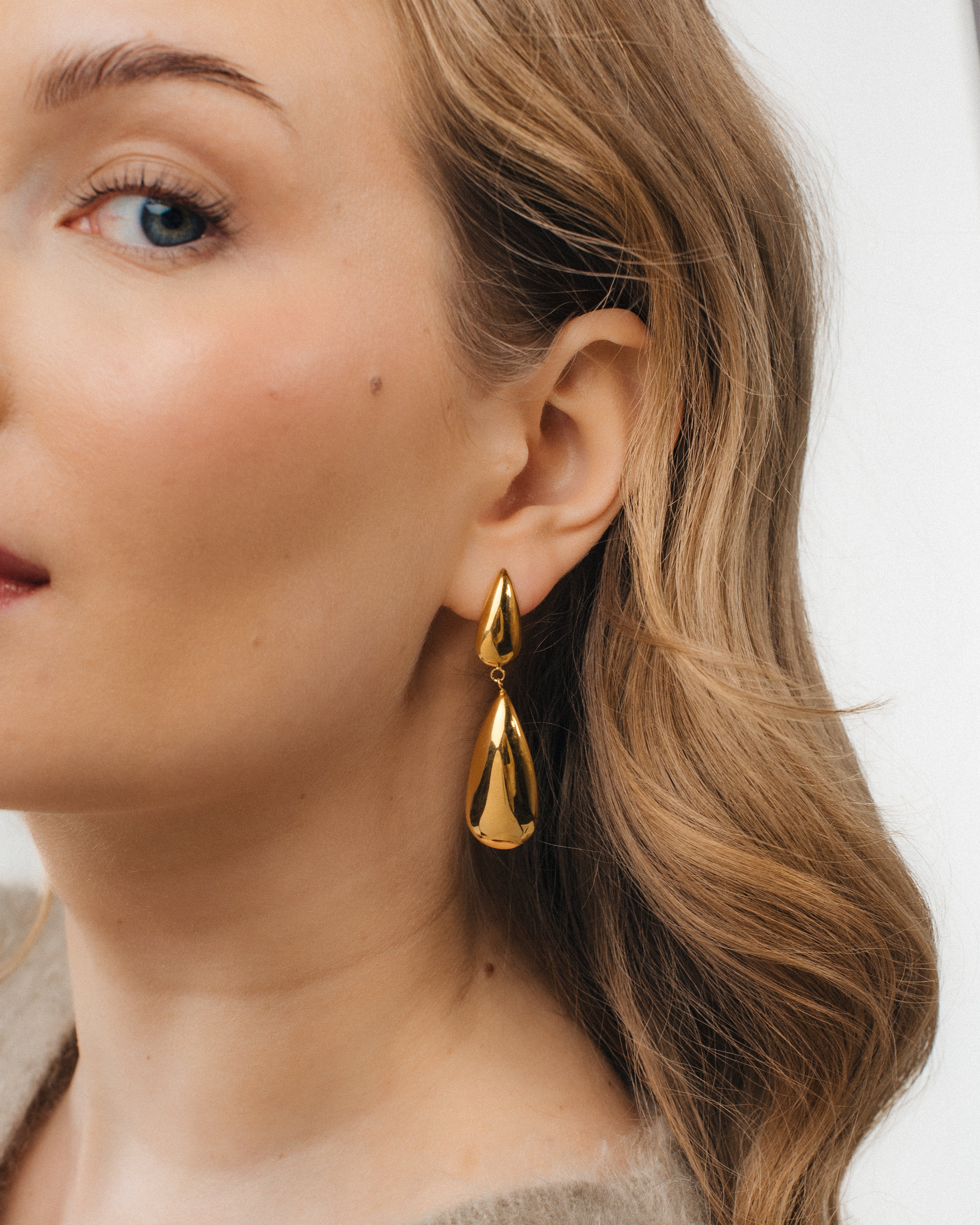 Classic dangling drop earrings, where an elegant shape is combined with a slightly more impressive size, creating an eye-catching look. The clean-lined design makes them easy to combine and timelessly stylish.