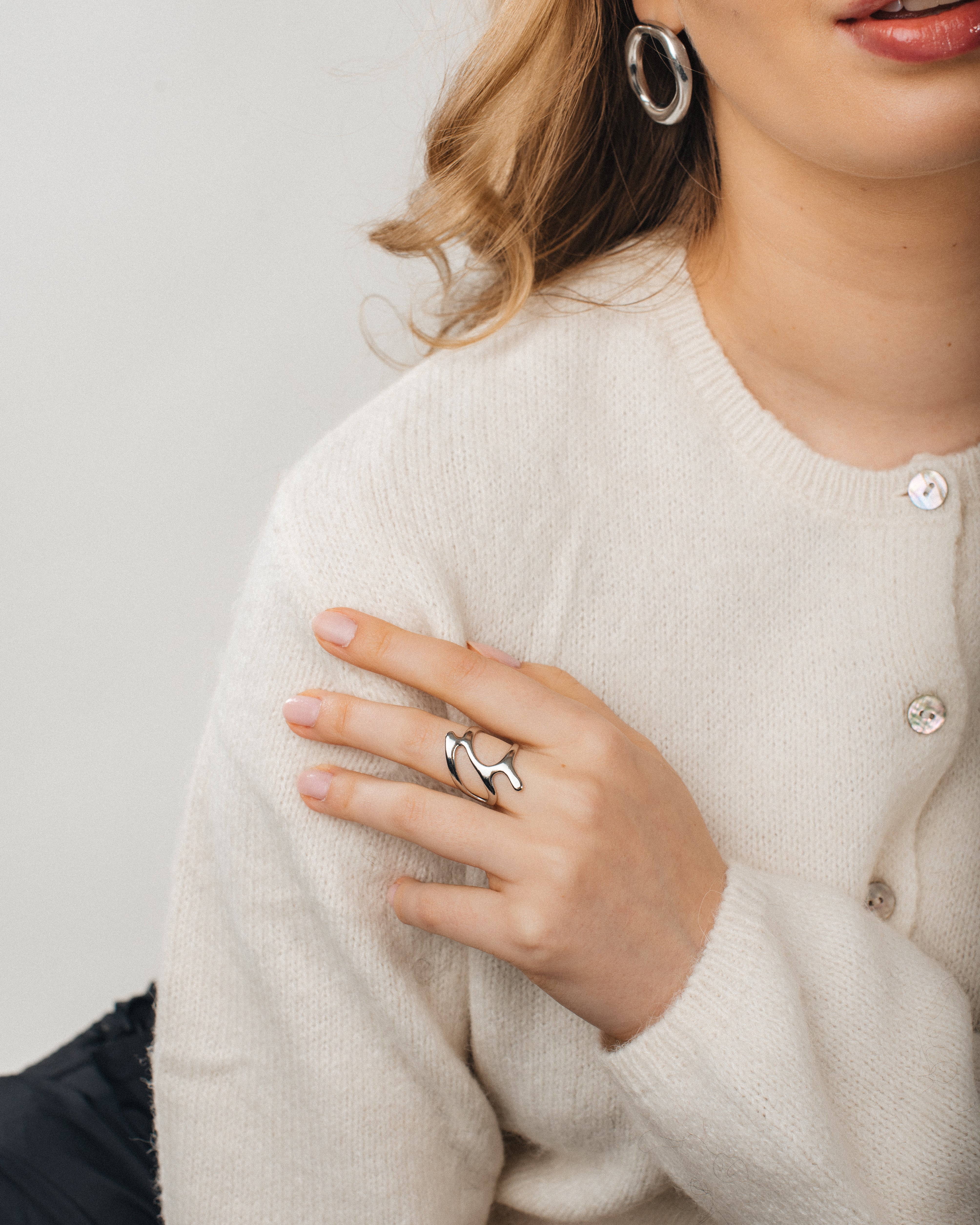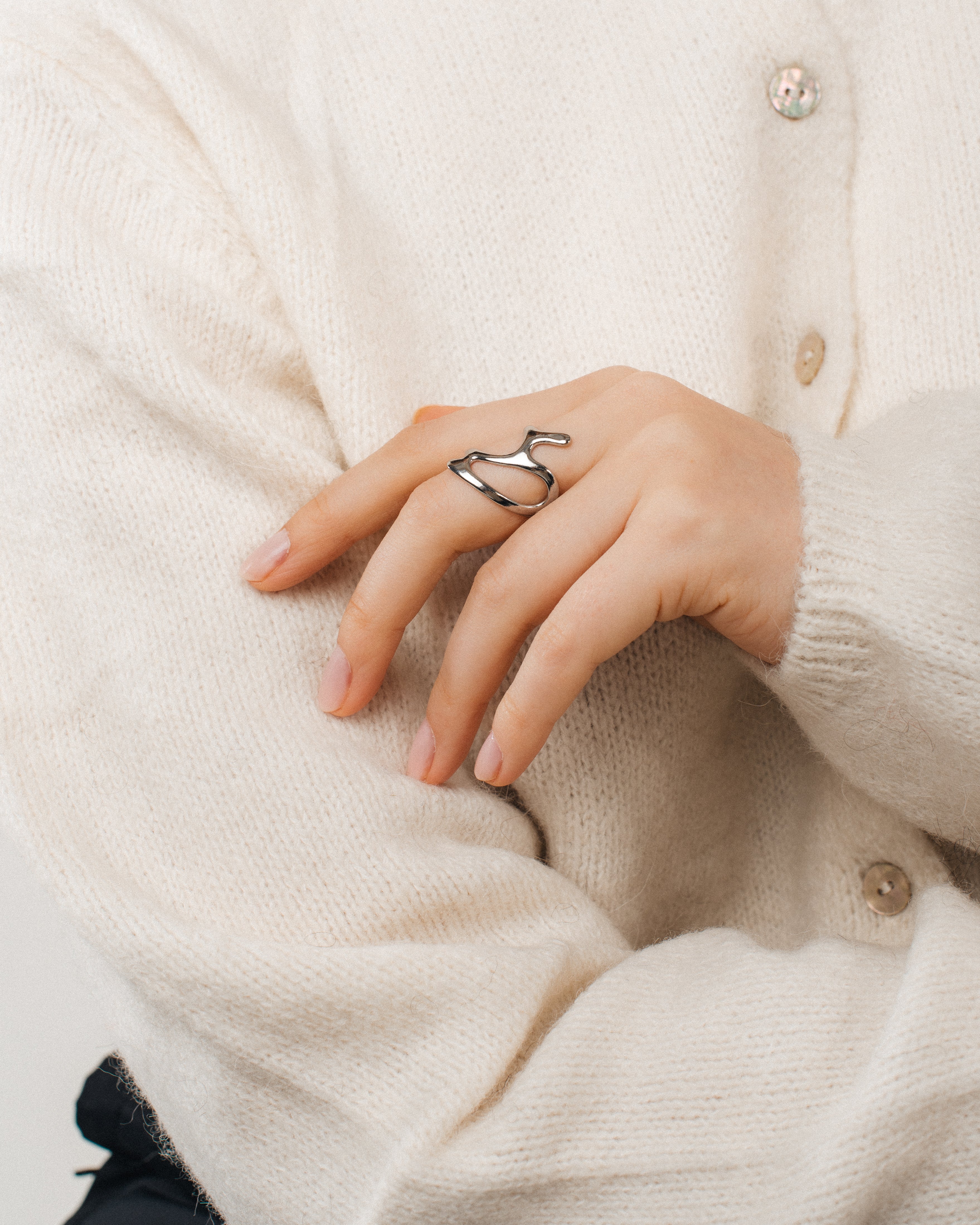 A modern and sculptural ring whose design makes it easy to combine with other jewelry or wear on its own as an eye-catching detail.